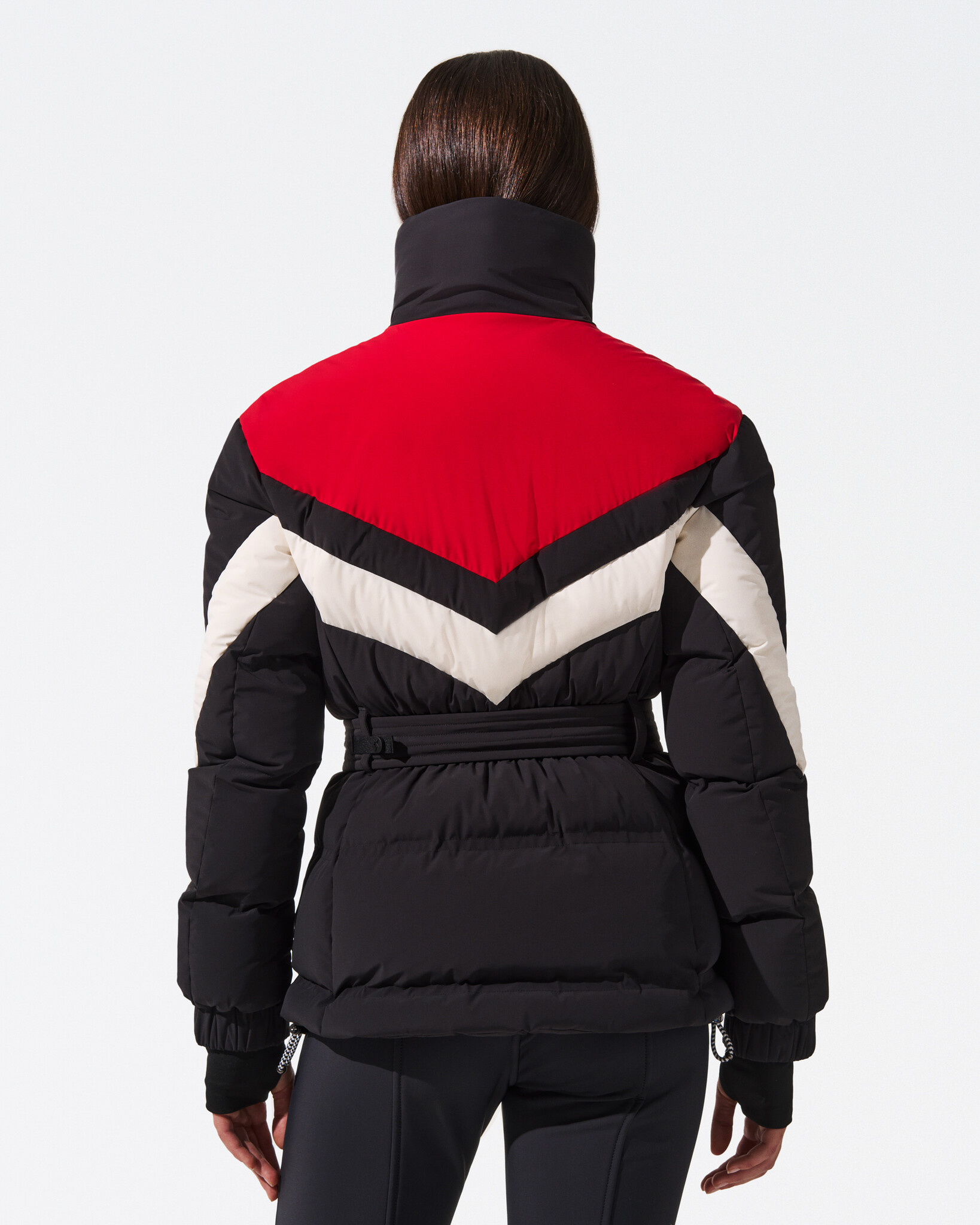 Introducing the JG Down Parka, a retro-inspired piece with modern functionality. Designed to hit below the hip, this fitted parka is crafted with 700-fill-power down insulation for superior warmth. Featuring a high-neck collar and multiple pockets—including dedicated slots for your ski pass and goggles—it's as practical as it is stylish. Pair it with the JG Ski Suit or Red Aurora Flare Pants for a refined après-ski ensemble.