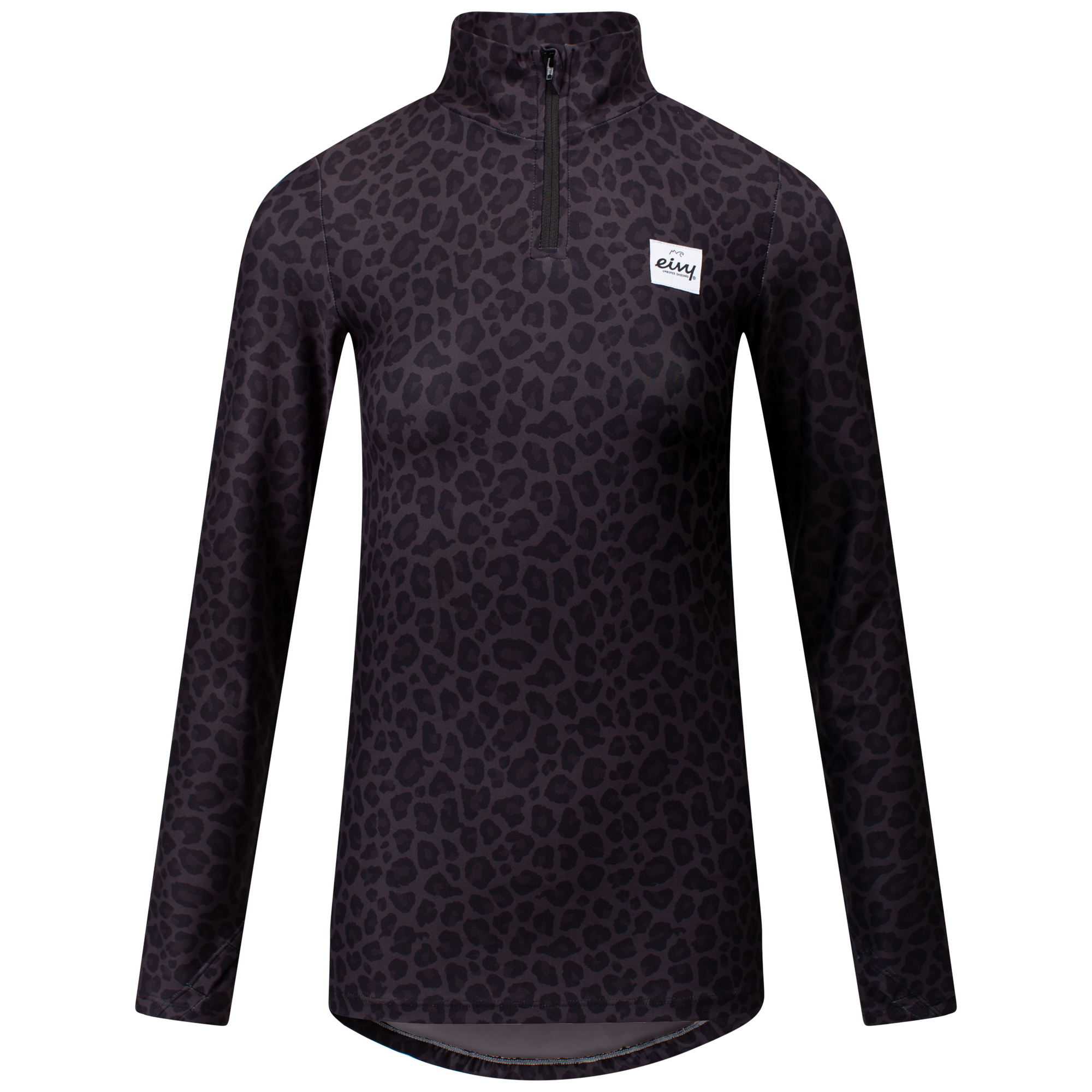 The Eivy Journey Top in black leopard print is designed as a body-hugging base layer with a shorter zipped collar. This base layer works just as well on the slopes as during après-ski, running, or in your everyday life. The snug fit allows you to layer multiple garments over it on the coldest days, and the integrated thumbholes help keep the sleeves in place, even when worn under layers.