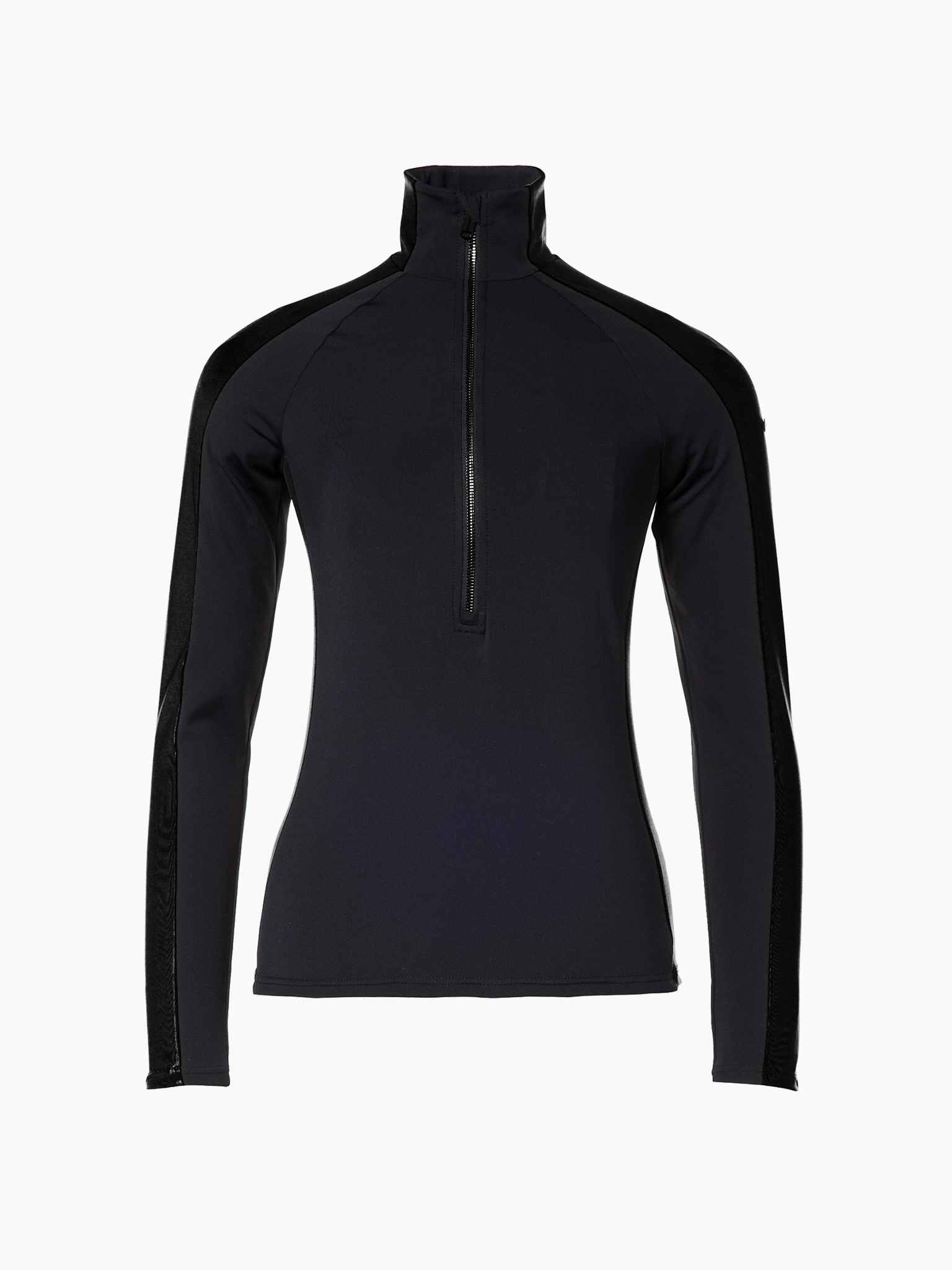 The Goldbergh Royal Ski Pully is made from powerstretch interlock with a soft brushed back. This pully features raglan sleeves and a close-fitting collar, ensuring a sporty and comfortable fit. The longer length for the ½ zip makes it easy to put on and take off. The glossy stripe inserts on the collar, sleeves, and side body add a trendy touch. A metal brand emblem on the upper sleeve adds a luxurious detail to this item.