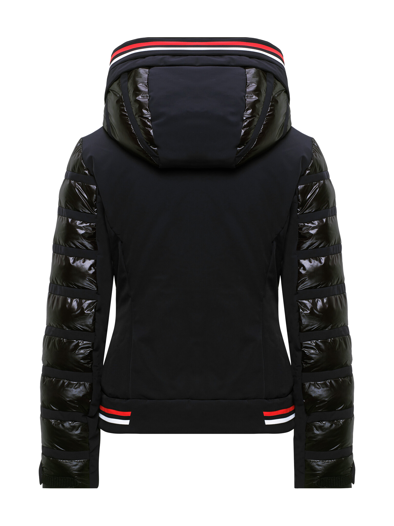 The RUBIE women’s ski jacket stands out with a sporty and fashionable material mix – Nylon Ripstop Cire Finish Finish combined with Japanese Premium 4-way Stretch. Equipped with a high-performance PU membrane, cold, wind, and water don’t stand a chance. YKK AquaGuard® zippers and a water-repellent finish add to the protection. Optical highlights include colour-contrasted laser cut stripes on the hood and hem, and the Toni Sailer gams on the zipper garages.