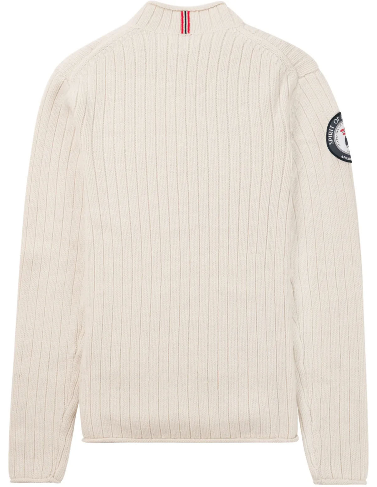 De Oatmeal kleur benadrukt het rustieke, Scandinavische karakter, terwijl de hoge col bescherming biedt tegen kou en wind. Dankzij het robuuste breisel en de subtiele Amundsen-details is dit een trui die generaties meegaat — zowel functioneel als stijlvol.
