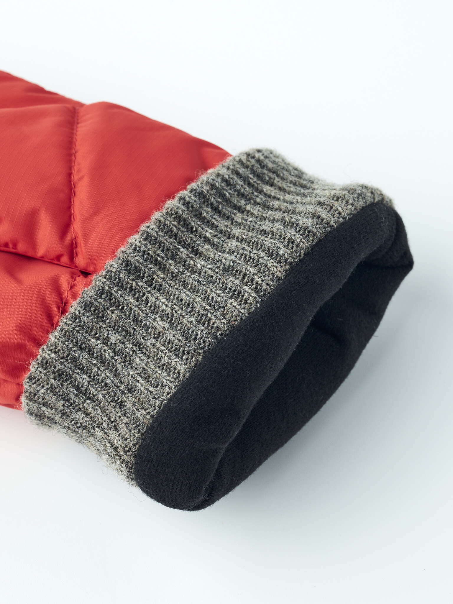 - Korte, geribde manchet (80% wol, 20% gerecycled polyamide)